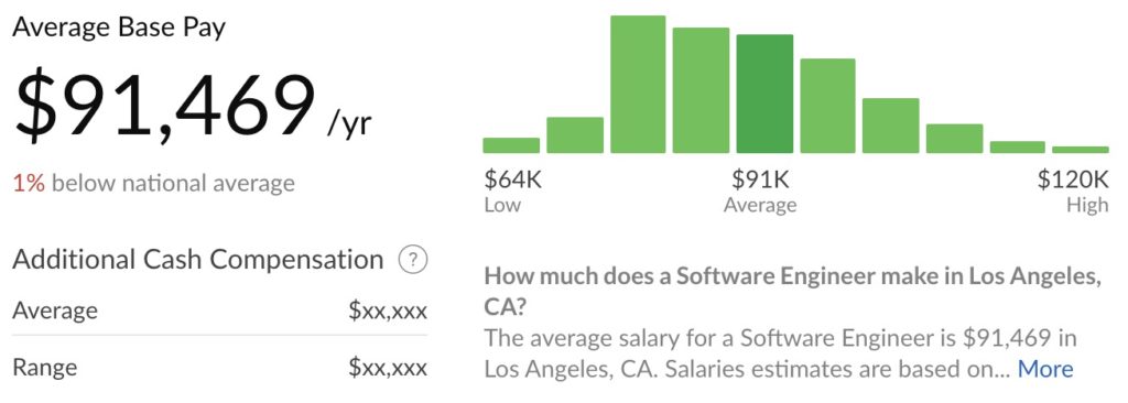 ロサンゼルスのソフトウェアエンジニアの平均給与は年俸$91,469